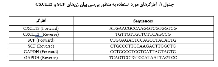 ژن GAPDH  بـه عنوان ژن مرجع (Housekeeping) در نظر گرفته شد. آغازگرهای مورد استفاده در جدول شماره 1 آورده شده‌اند.